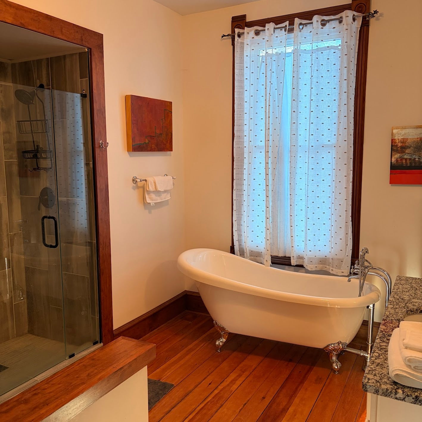 π Two Bathrooms (each has walk in shower, one has a soaking tub)