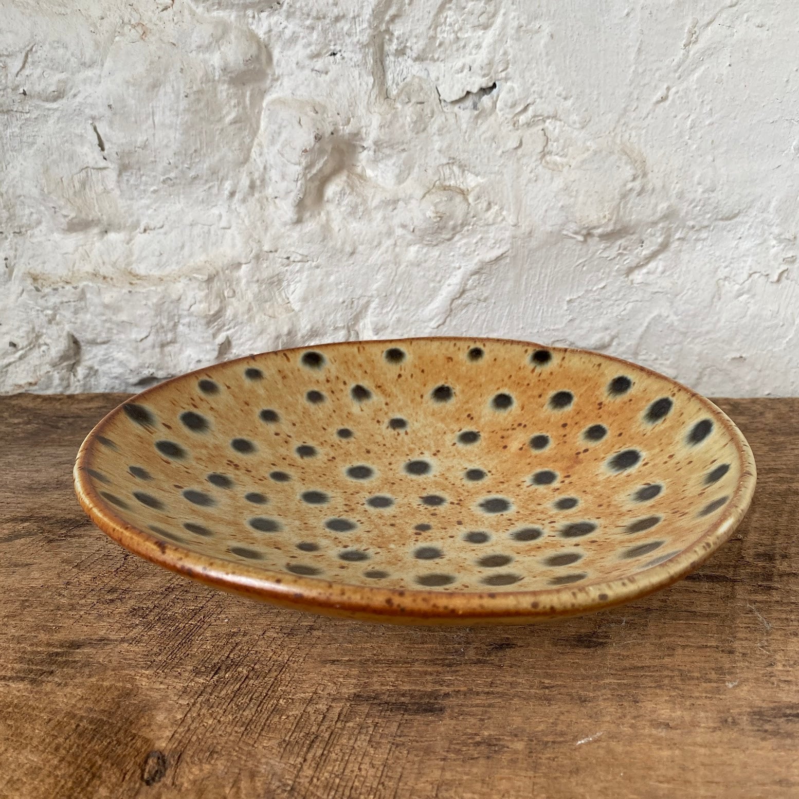 All textured pieces are handmade using various methods. We use a combination of texturally intriguing items like vintage lace, antique rolling pins, stamps, and wooden blocks, just to name a few. Some textures are even made with old tools that were used many years ago when our studio was still an operating brewery.