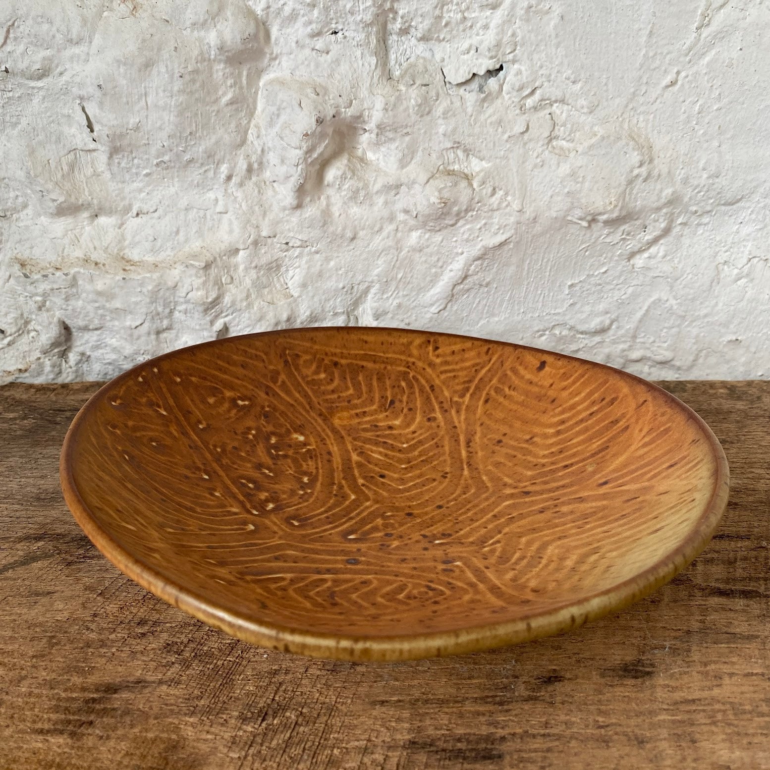 All textured pieces are handmade using various methods. We use a combination of texturally intriguing items like vintage lace, antique rolling pins, stamps, and wooden blocks, just to name a few. Some textures are even made with old tools that were used many years ago when our studio was still an operating brewery.
