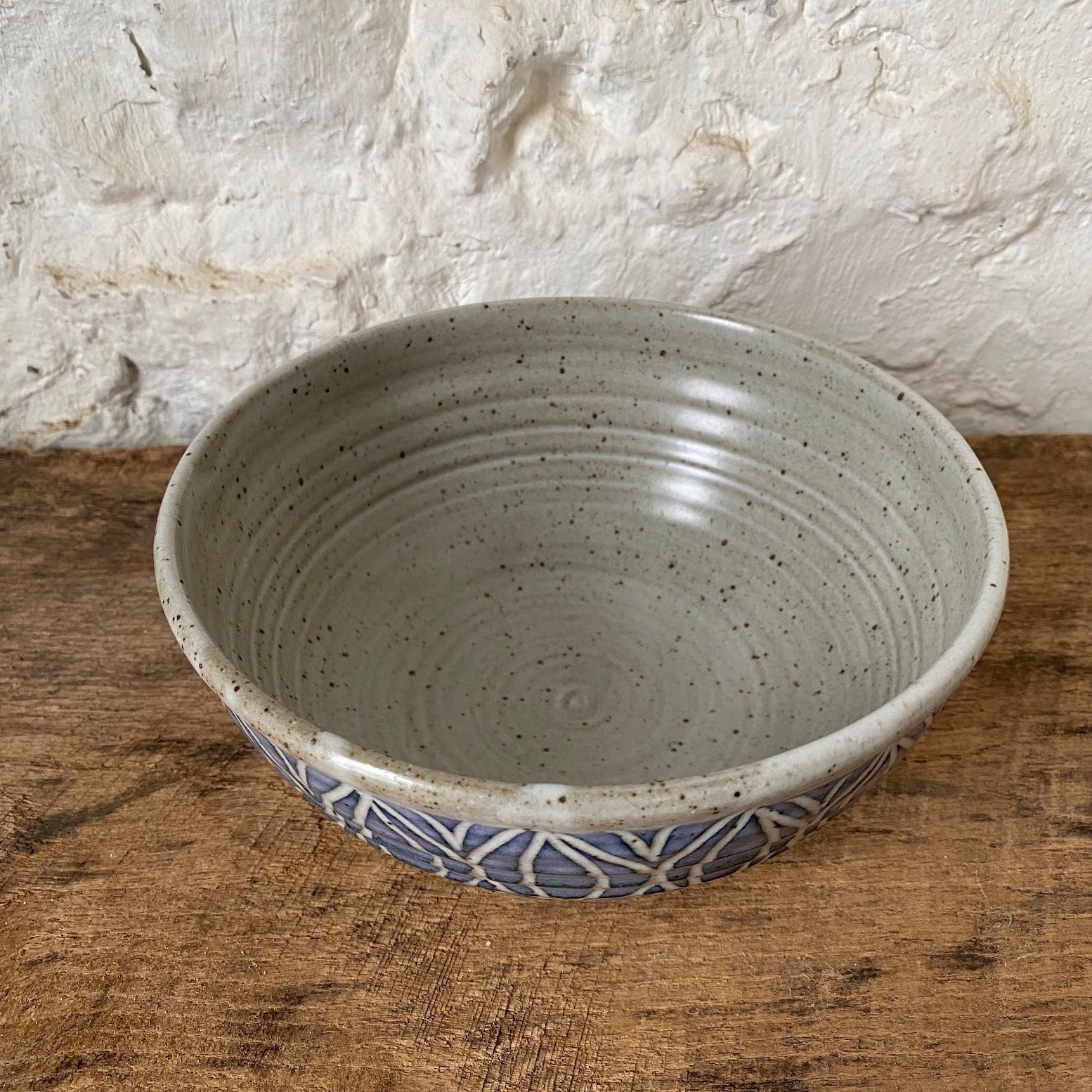 Each carved piece is painted with our signature blue slip while leather hard and hand carved to create each individual pattern. All patterns started off as an idea, became a sketch, and through the years have been honed into the designs you know and love today.
